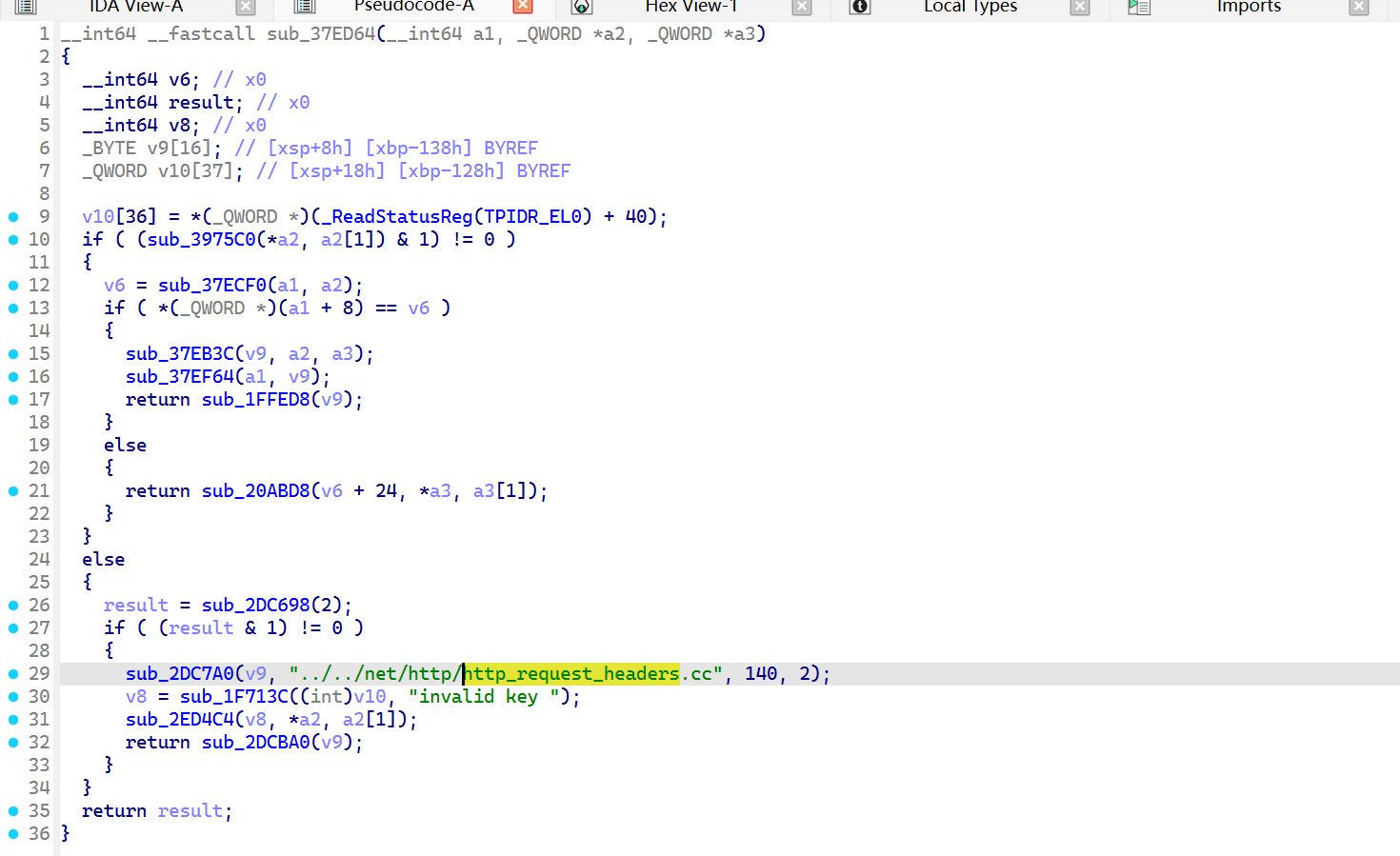 这种大型的 app,这种关键参数涉及到的算法不太可能是在 Java 层生成的(因为我刚才搜索字段,直接给 jadx 卡死了,占22G 内存,总共才 32G 啊),那就只能是在 native 层生成的,像请求头这种东西,一般是在发包请求之前进行构造的吧,还是继续分析 libsscronet.so 这个库,那它是在哪儿添加的请求头呢?