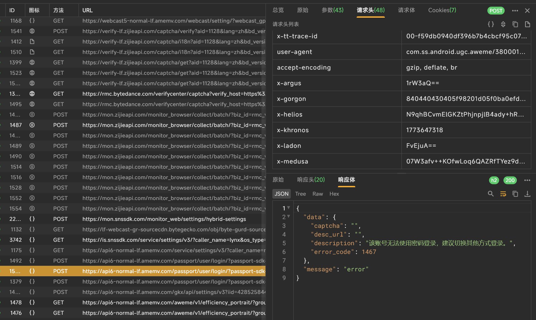 接着,我是直接抓的登录包,毕竟抓这个包最明显